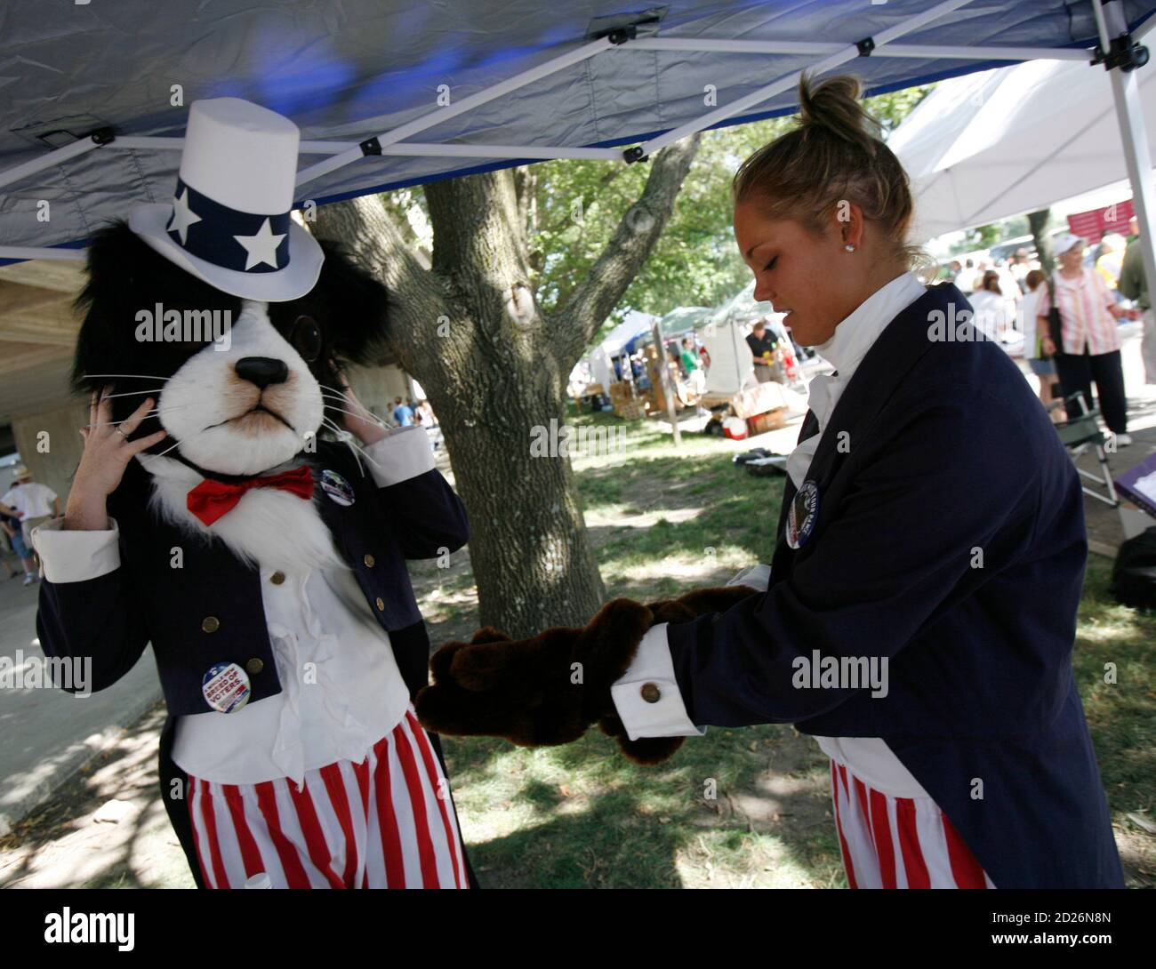 Jocie Kinnestav L And Katie Riley Prepare Encourage Iowans To Register Their Pets To Vote During The Iowa Straw Poll In Ames Iowa August 11 2007 The Volunteers Are Part Of An